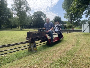 Today saw the return for us, once again, providing miniature train rides, following our track repairs. After completing some test runs in the morning we then reopened for public running. To mark the occasion, we did not charge our usual £1 fare, instead we had a bucket for voluntary donations that we will use to offset some of the costs that the repairs have come to. Many families were able to partake in rides, including a two week old baby! Thanks to everyone who did donate, your help is much appreciated.