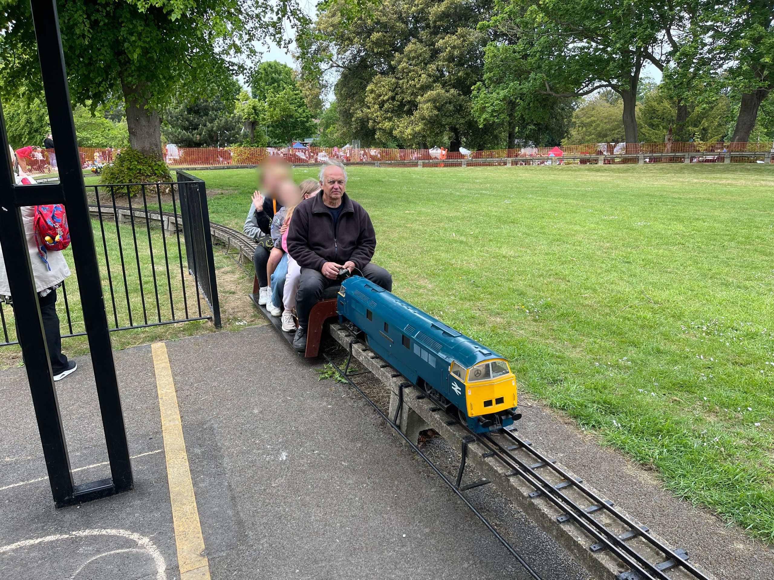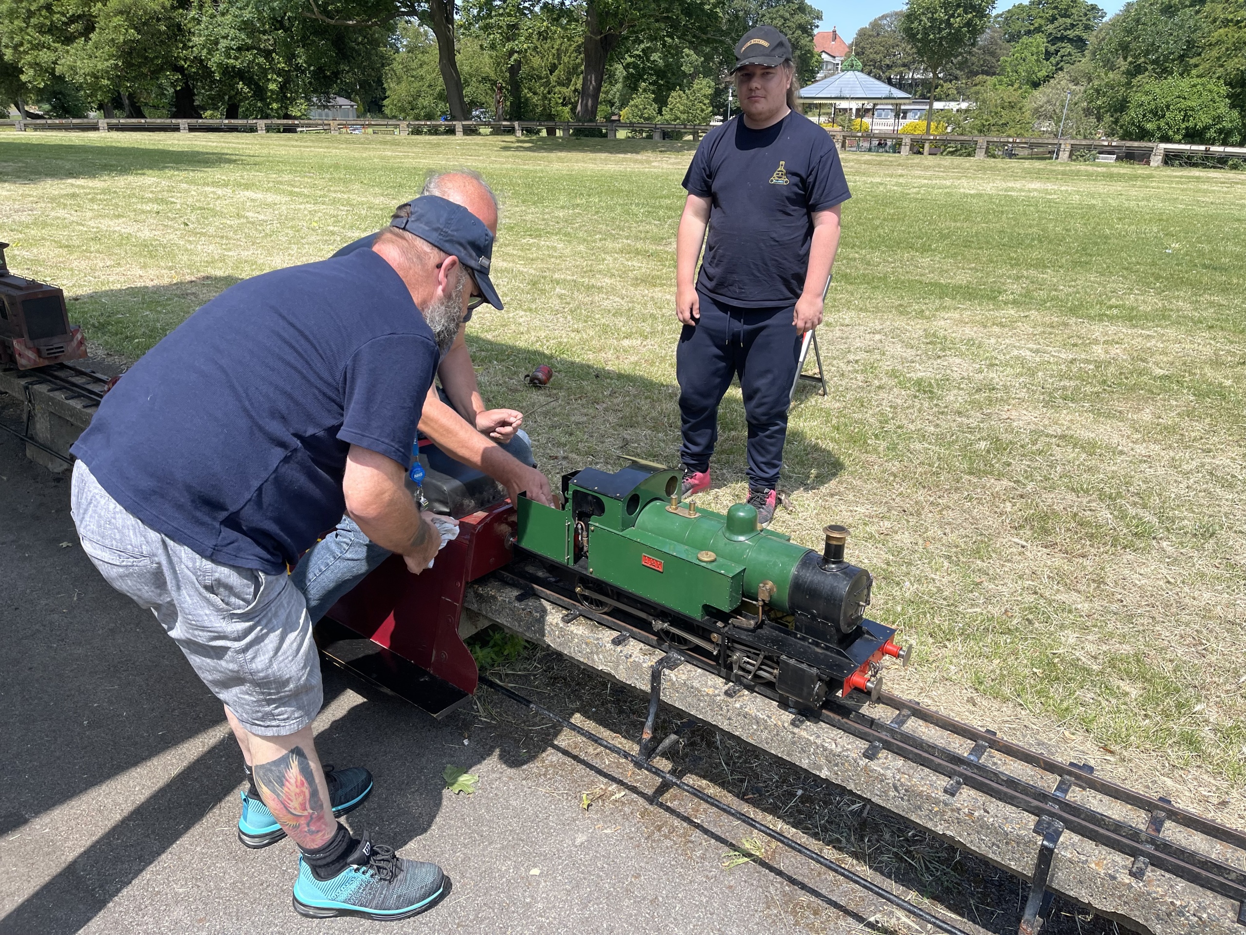 Today saw the return for us, once again, providing miniature train rides, following our track repairs. After completing some test runs in the morning we then reopened for public running. To mark the occasion, we did not charge our usual £1 fare, instead we had a bucket for voluntary donations that we will use to offset some of the costs that the repairs have come to. Many families were able to partake in rides, including a two week old baby! Thanks to everyone who did donate, your help is much appreciated.